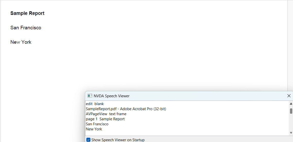 When the report is exported to PDF and read via NVDA screen reader, the text field should be announced as a "paragraph."